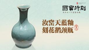5′10″㊲汝窑天蓝釉刻花鹅颈瓶