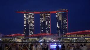 8″新加坡地标滨海湾金沙酒店披上中国红