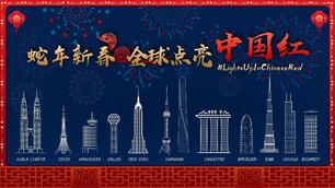 1′28″上海邀约多国高塔,全球接力贺岁点亮中国红