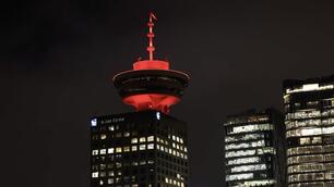8″氛围感拉满!加拿大温哥华观光塔亮起中国红