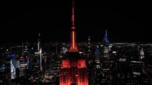 14″中国红点亮曼哈顿天际线 迎蛇年新春