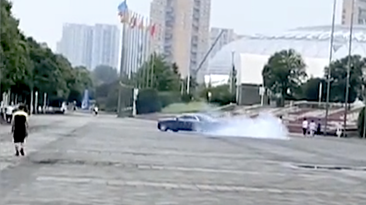视频 | 广场人行道上竟有车玩漂移 目击者:周围有不少人