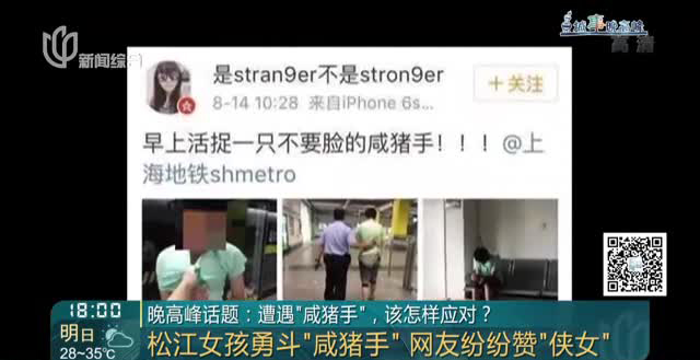现实中,很多人都觉得骚扰难以界定,或者觉得没有人会出来帮助自己,就对“咸猪手”听之任之。而正是这种心理助长了“咸猪手”的猖狂。其实,在新闻中,我们也看到,还是有很多热心的市民会提醒受害者、会拍摄保留证据,甚至挺身而出,帮助抓住“咸猪手”,那被骚扰的对象也一定要及时站出来表明态度,第一时间报案,警方才能在证据链完整的情况下,为其伸张正义。