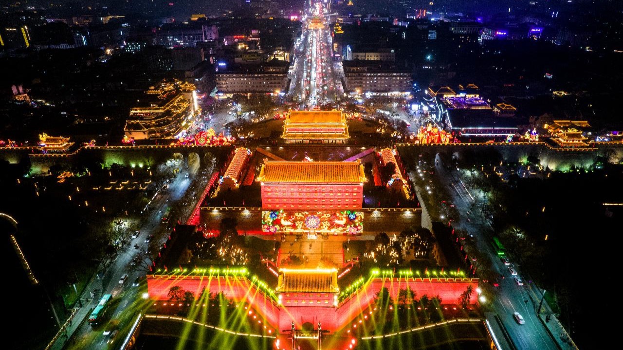 视频 | 中国红扮靓西安古城墙 巨幅春联上墙了!