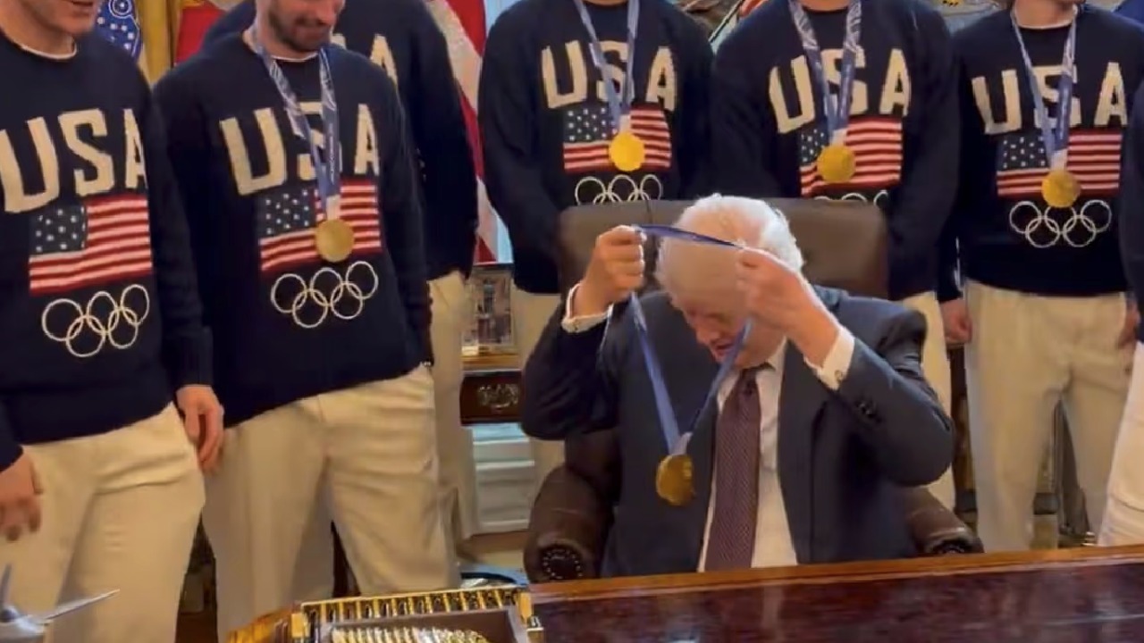 视频 | 美网友这句吐槽成真 特朗普试戴冬奥金牌“不还”