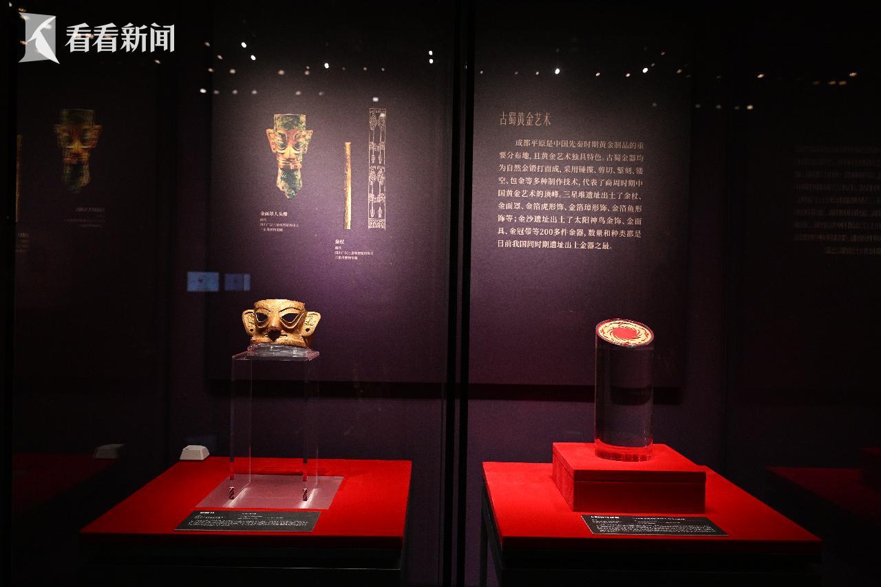 太阳神鸟于2001年出土,金面具于2007年出土,属商周时期古蜀文明核心重宝。太阳神鸟金饰是中国文化遗产标志,此次是其2008年外出参展后,近18年首次离馆,其中金面具见证了三千年前古蜀先民成熟的黄金锻制工艺。两件文物均代表古蜀黄金工艺巅峰水准。