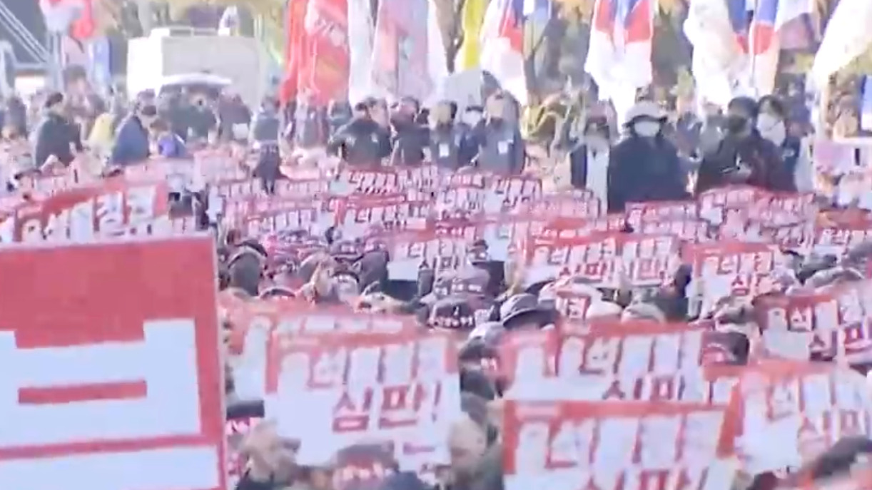 视频 | 超10万人参与!为保罢工权益 韩国工会组织集会