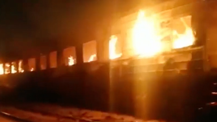 视频 | 真·火车!哈萨克斯坦一列火车行进中突然失火