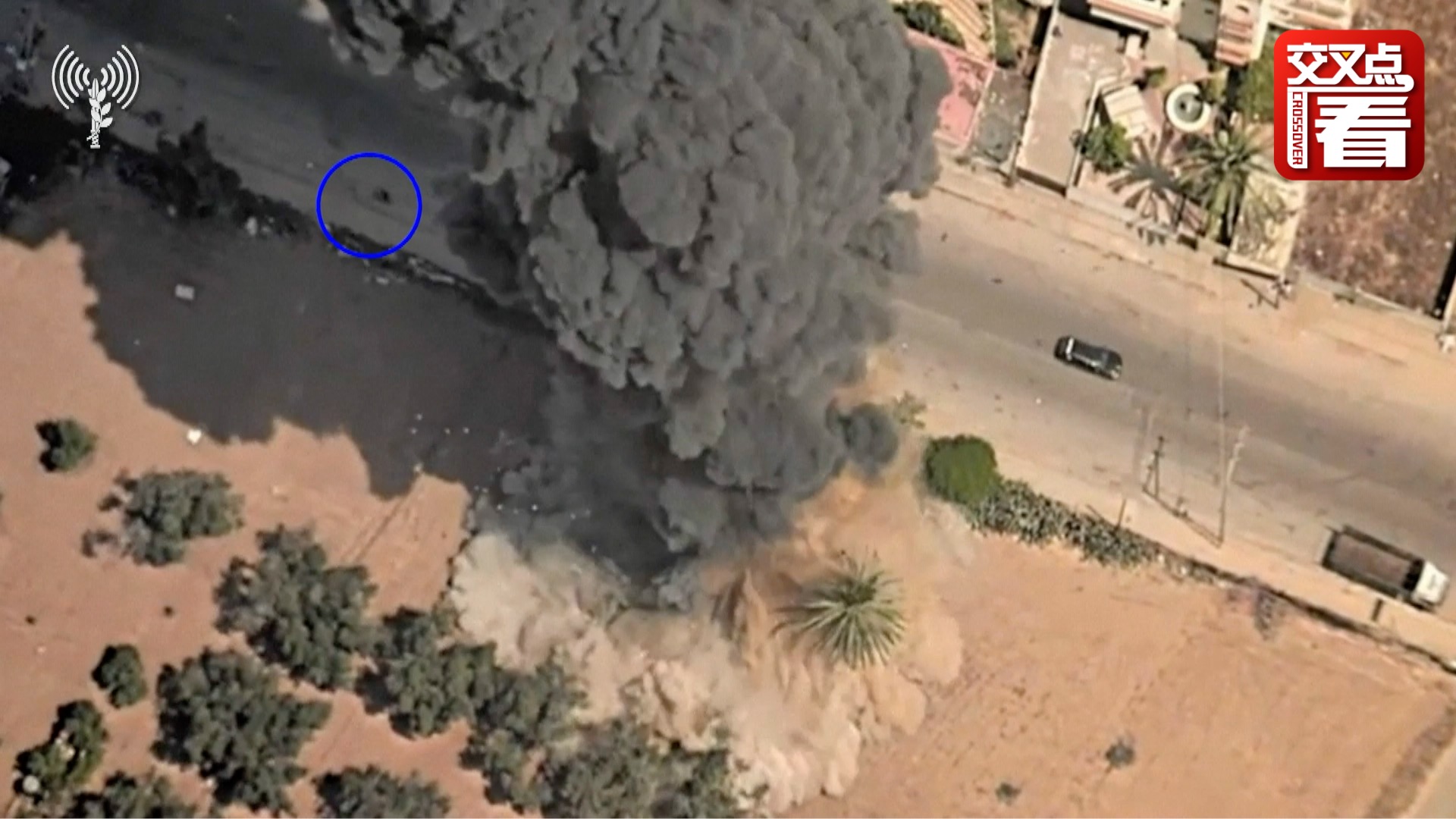 视频 | 以色列发动空袭时,旁边来了个骑自行车的路人