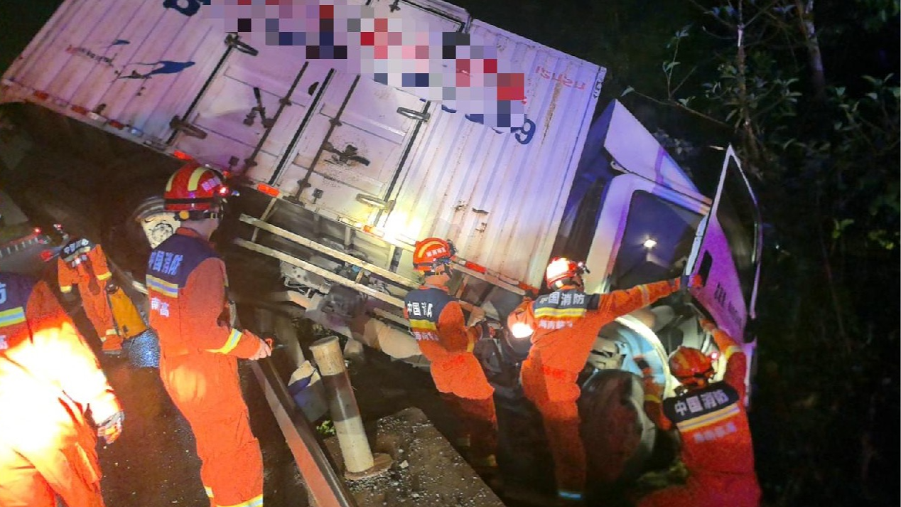 视频 | 货车撞护栏两人被困 消防雨夜“接力怀抱”救援