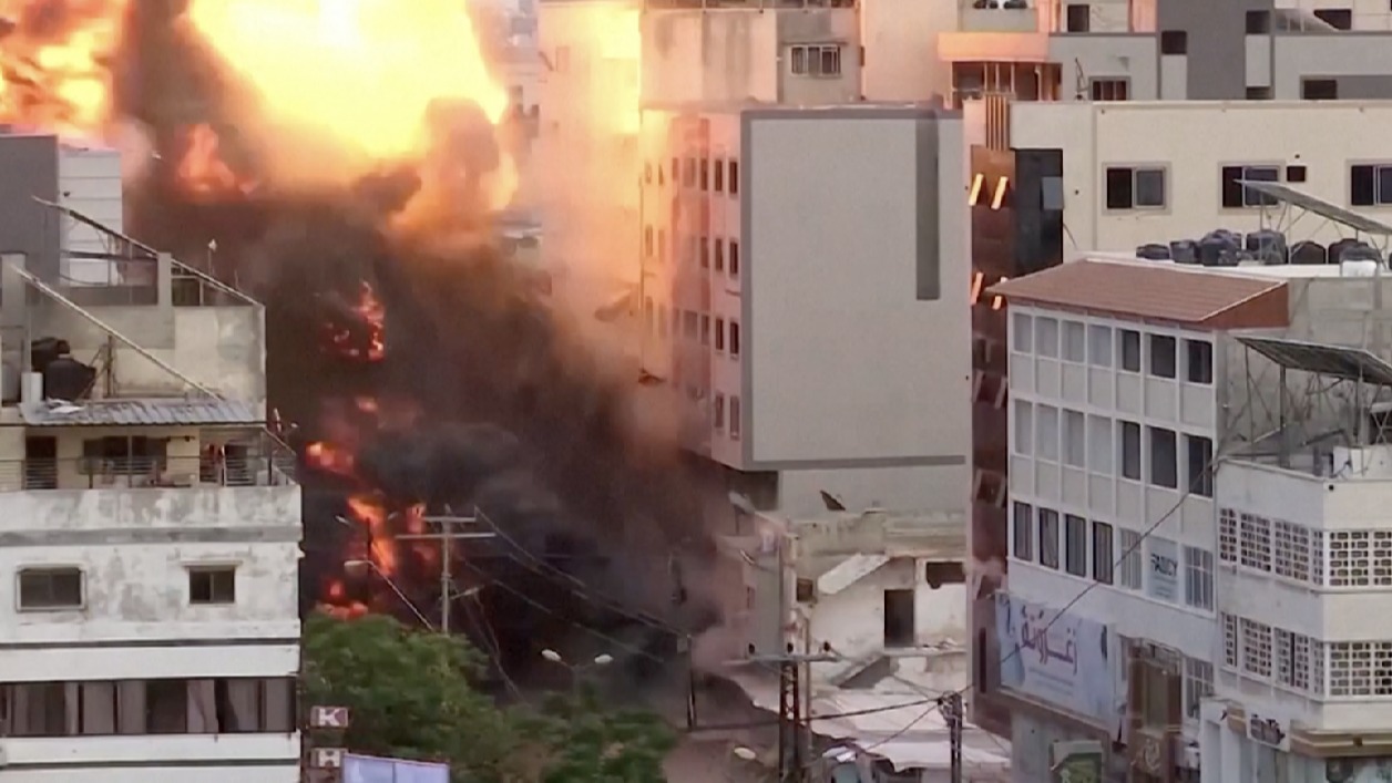 视频 | 加沙女孩被持续轰炸吓坏,躲入大人怀中不敢前行