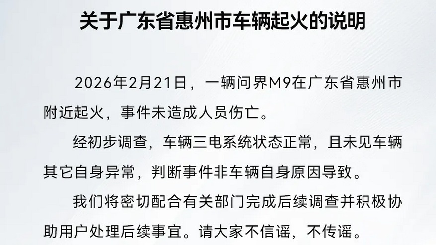 视频 | 问界回应广东惠州车辆起火:三电系统状态正常
