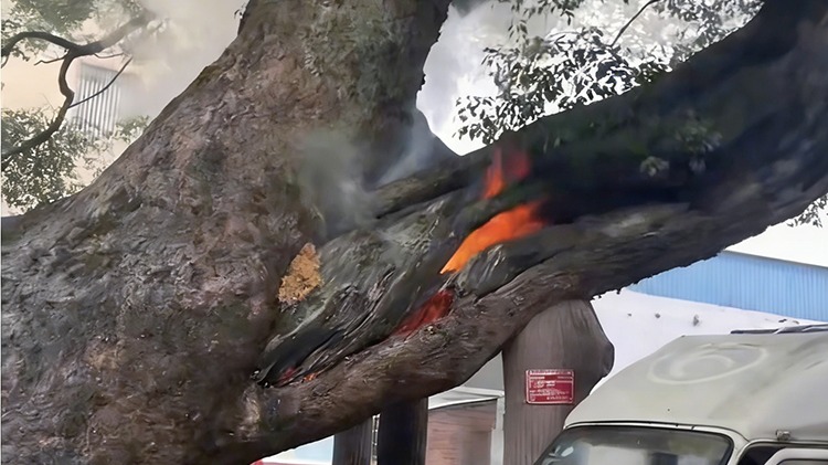 视频 | 两小孩把爆竹扔进树干空心 1200年古树烧了7小时