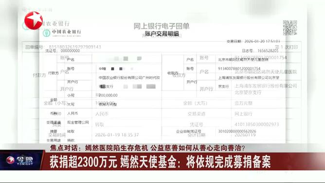 06′26″2026/01/20 - 30多万网友捐款2000多万 嫣然天使基金:将依规完成募捐备案