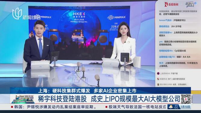 02′44″6小时前 - 上海:硬科技集群式爆发 多家AI企业密集上市 稀宇科技登陆港股 成史上IPO规模最大AI大模型公司
