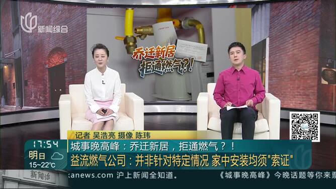 17小时前 - 城事晚高峰:乔迁新居,拒通燃气?! 益流燃气公司:并非针对特定情况 家中安装均须“索证”